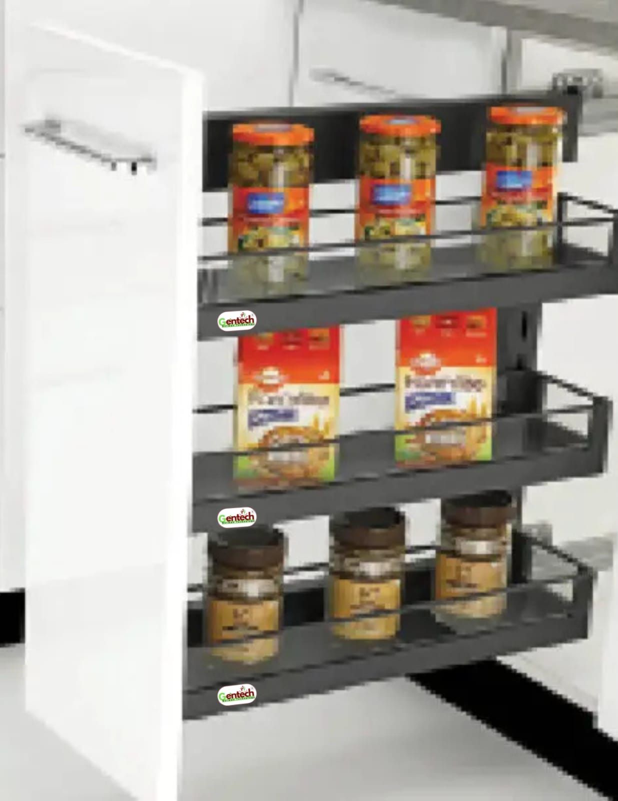 Revolutionize your kitchen storage with Gentech Magic Corner Cabinet Organizer! Featuring multiple sliding trays, this organizer is perfect for keeping jars and containers neatly arranged. "The best feature about this organizer is that it can be used on either the left or right corner."It not only maximizes your cabinet space but also ensures your kitchen stays tidy and efficient. Available to fit your needs and in sleek modern colors, it's an essential addition to any home.