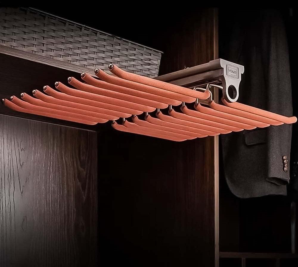 Space-Saving Design: Anchored beneath shelves, this rack makes use of otherwise unused wardrobe space, keeping your clothes neatly organized.