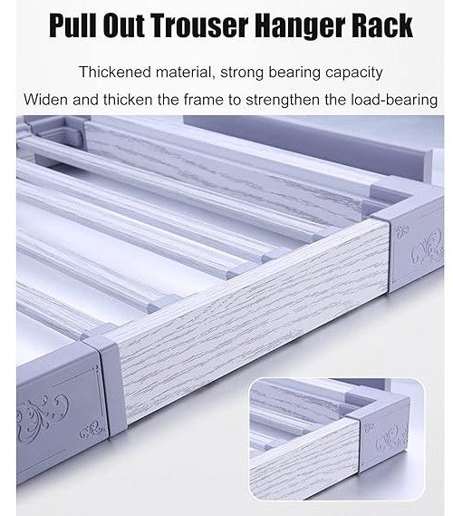 【Quiet Mute and Smoothly Work】The pull out trousers rack with damping buffer bottom, double row of three Mute Pulley, provides cushioned rebound effect for better silent mute; Silent metal side, Pull Soomth, no sense of stopping, telescopic freely.